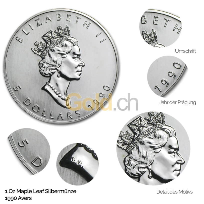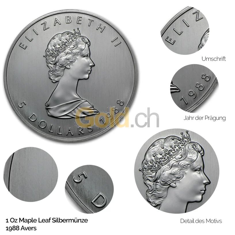 Die 1-Unzen Silbermünze Maple Leaf erscheint seit 1988 mit gleichen Vorder- und Rückseitenmotiven. Im Laufe der Prägezeit wurde das Portrait der britischen Königin jedoch mehrfach verändert und ihrem Aussehen angepasst. Zu besonderen Anlässen präsentierte sich auch der Münzrevers in modifizierter Gestaltung. Um die Fälschungssicherheit zu erhöhen, erhielt die silberne Bullionmünze 2014 ein umfassendes Re-Design. In unserem Jahrgangsüberblick stellen wir Ihnen alle Besonderheiten und Abweichungen von der klassischen Darstellung vor.