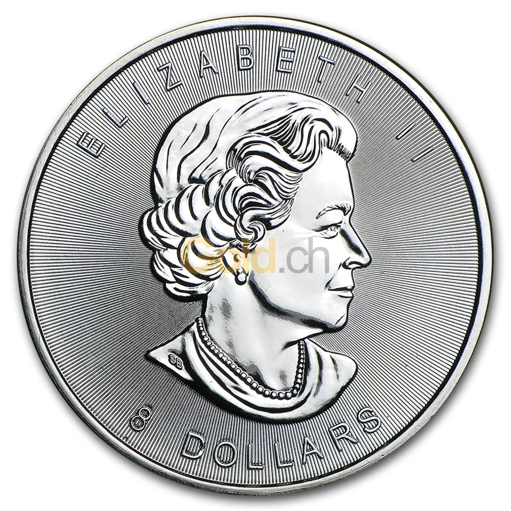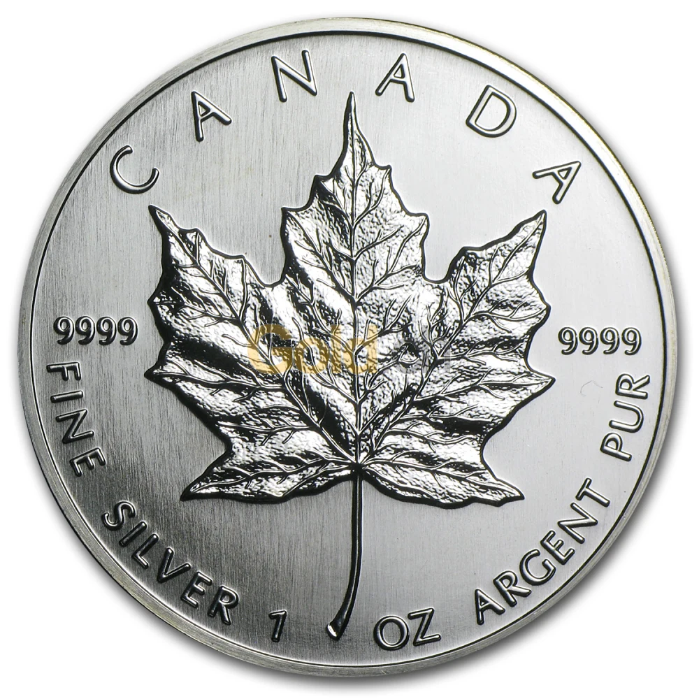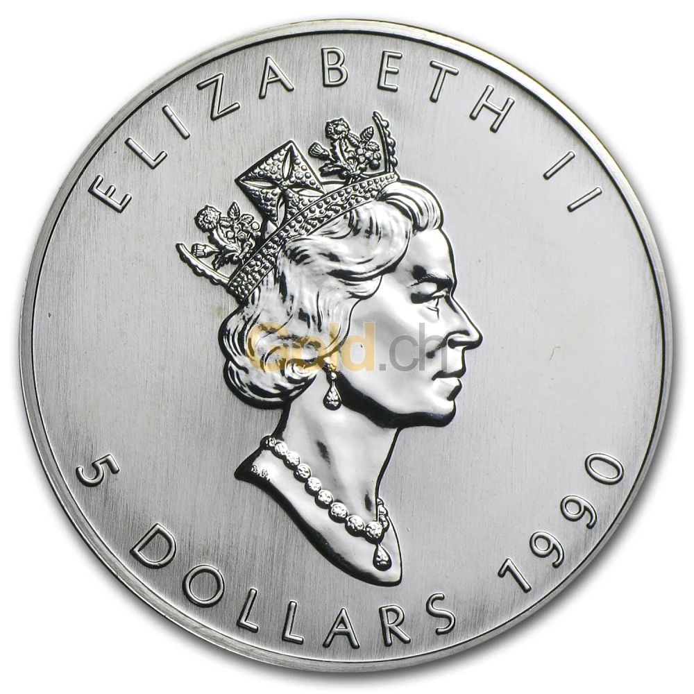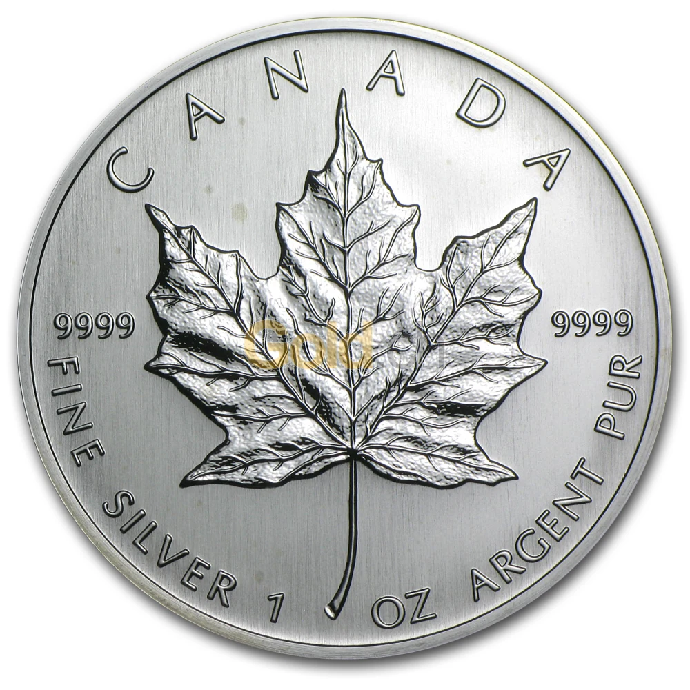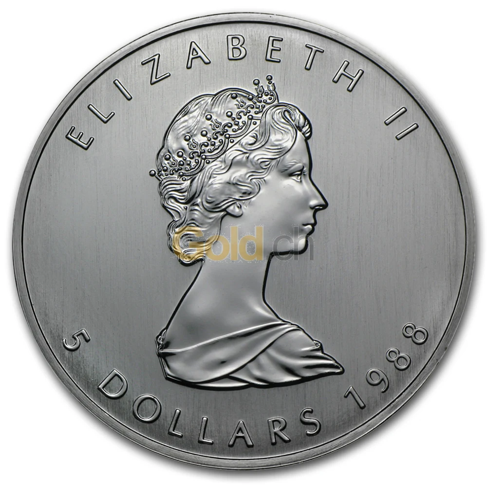 Nach dem großen Erfolg der Goldmünze bringt das kanadische Prägeunternehmen Royal Canadian Mint seit 1988 das Bullionprodukt Maple Leaf ebenfalls als Silbermünze heraus. Sie erscheint mit jährlich identischen Motiven in der Standard-Stückelung zu einer Feinunze Silber in unlimitierter Auflage. Versehen ist die Anlagemünze mit einem Nennwert von 5 Kanadischen Dollar, wodurch sie als gesetzliches Zahlungsmittel in Kanada gilt. Durch die hohe Feinheit von 999,9 Tausendstel Silber übersteigt der Materialwert jedoch das Nominal. Ihre aufwendig gestaltete Bildseite zeigt ein einzelnes Ahornblatt, das Nationalsymbol Kanadas. Die Vorderseite ziert das Portrait von Queen Elizabeth II. Der Münzrand verfügt über eine gerade Riffelung.