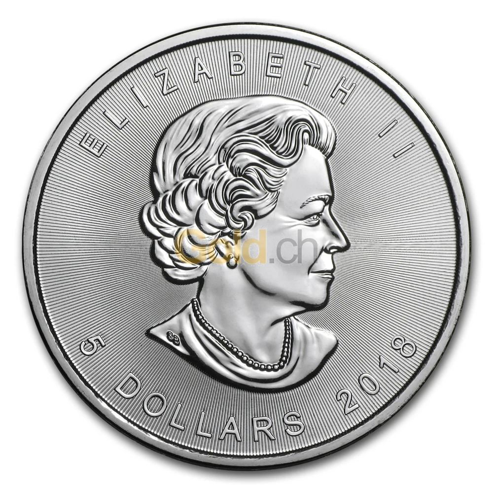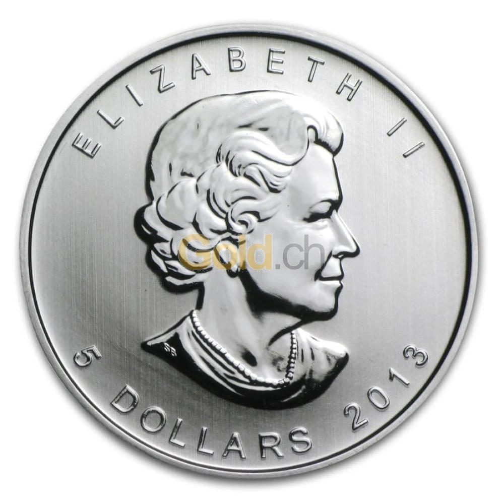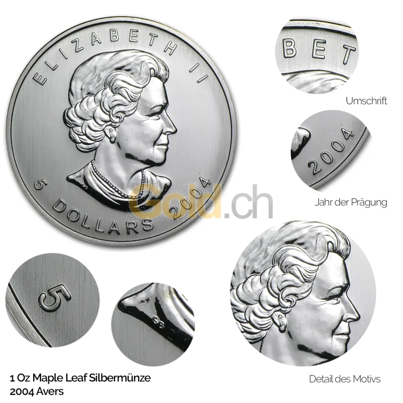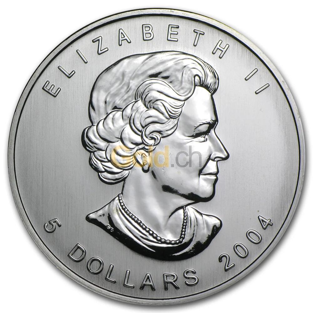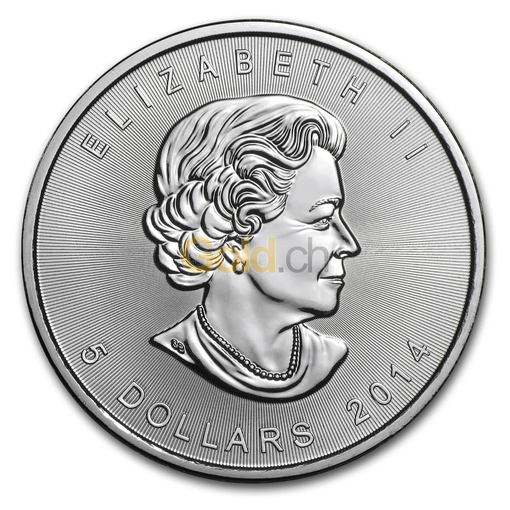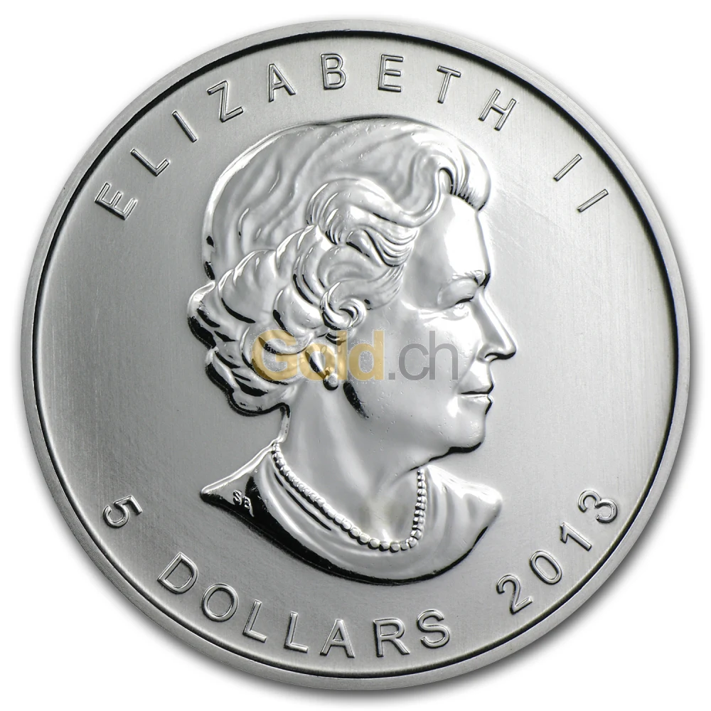 Nach dem großen Erfolg der Goldmünze bringt das kanadische Prägeunternehmen Royal Canadian Mint seit 1988 das Bullionprodukt Maple Leaf ebenfalls als Silbermünze heraus. Sie erscheint mit jährlich identischen Motiven in der Standard-Stückelung zu einer Feinunze Silber in unlimitierter Auflage. Versehen ist die Anlagemünze mit einem Nennwert von 5 Kanadischen Dollar, wodurch sie als gesetzliches Zahlungsmittel in Kanada gilt. Durch die hohe Feinheit von 999,9 Tausendstel Silber übersteigt der Materialwert jedoch das Nominal. Ihre aufwendig gestaltete Bildseite zeigt ein einzelnes Ahornblatt, das Nationalsymbol Kanadas. Die Vorderseite ziert das Portrait von Queen Elizabeth II. Der Münzrand verfügt über eine gerade Riffelung.