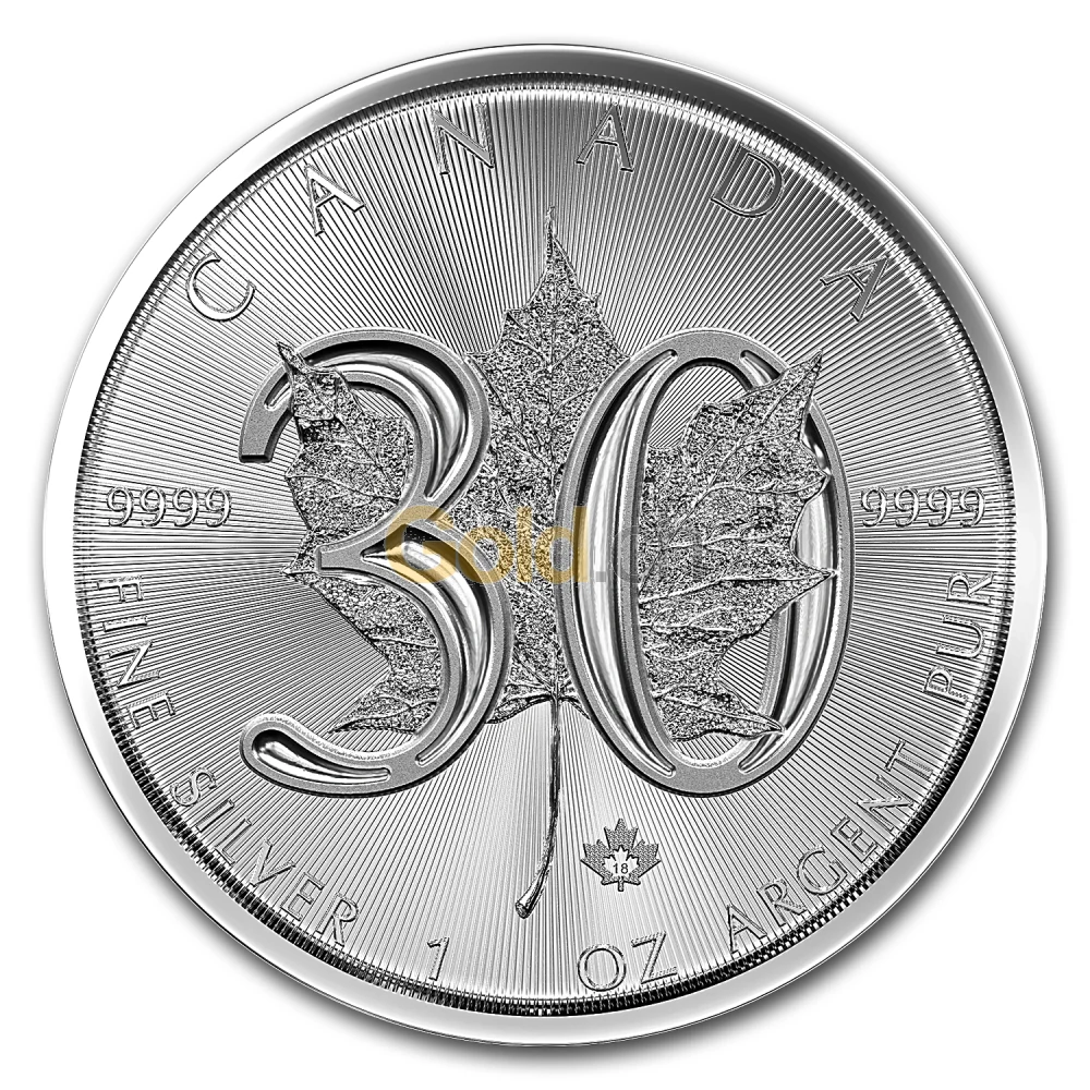 Neben der Standard-Prägung erscheint 2018 ebenfalls eine spezielle Ausgabe, die das 30. Prägejubiläum der Silbermünze würdigt. So integriert der Jubiläumsavers die Jahre 1988-2018 in der Umschrift. Zudem lässt die Rückseite Sammlerherzen höherschlagen, denn das Ahornblatt trägt eine große 30 in mehrdimensionaler Gestaltung auf seinen Zacken.