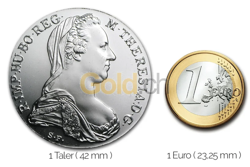 Der Maria Theresien Taler ist eine altertümlich anmutende Silbermünze, die eine bedeutende historische Figur zum Namen hat. Die Silbermünze, welche erstmals im Jahre 1741 im ehemaligen Heiligen Römischen Reich geprägt wurde, zeigt das Abbild der Kaiserin Maria Theresia mit Witwenschleier. Dieses Konterfei der Gattin des römisch-deutschen Kaisers Franz' I. Stephan ist seit 1780 auf dem Taler abgebildet. Das damalige, bis 1851 in Österreich zulässige Zahlungsmittel (bis 1851) bringt heute die Prägeanstalt Münze Österreich AG in Wien als Sammlermünze in normaler und Proof-Qualität heraus. Der Maria Theresien Taler ist eine der wenigen Münzen aus Silber mit besonders hoher Auflage, die sie als Zahlungsmittel erreichte. Seit ihrer ersten Prägung wurden bis ins Jahr 2017 schätzungsweise 400 Millionen Stück geprägt. Nicht nur in Wien wurde Maria Theresias Konterfei auf Silber geprägt, sondern in vielen weiteren Metropolen wie London, Paris und Bombay. Die aktuelle Neuauflage der Münze ist unlimitiert. Aufgrund der unterschiedlichen Auflagen kommt es unter Sammlern oft zu Fehleinschätzungen über das Alter der Originale. Der Feingehalt der Neuprägung des Maria Theresien Talers liegt bei 833,3 Silber in Legierung mit Kupfer. Der Nennwert ist seit Anbeginn der Prägung unverändert und entspricht 1 Taler. Die Nachprägung der Silbermünze, zu Ehren des 300. Geburtstags der Herrscherin, hat ein Feingewicht von 23,39 Gramm und ein Gesamtgewicht von 28,07 Gramm, ebenso wie das Original. Der Durchmesser des Talers liegt bei 42 mm. Der Maria Theresien Taler ist eine der weitverbreitetsten Silbermünzen der Welt und bietet sich ideal zur Wertanlage an. Auch als Sammlerobjekt ist der Taler aus feinem Silber seit jeher sehr begehrt. Neben der Silbermünze "Wiener Philharmoniker" ist sie eine der beliebtesten Silbermünzen, die in Österreich geprägt werden.