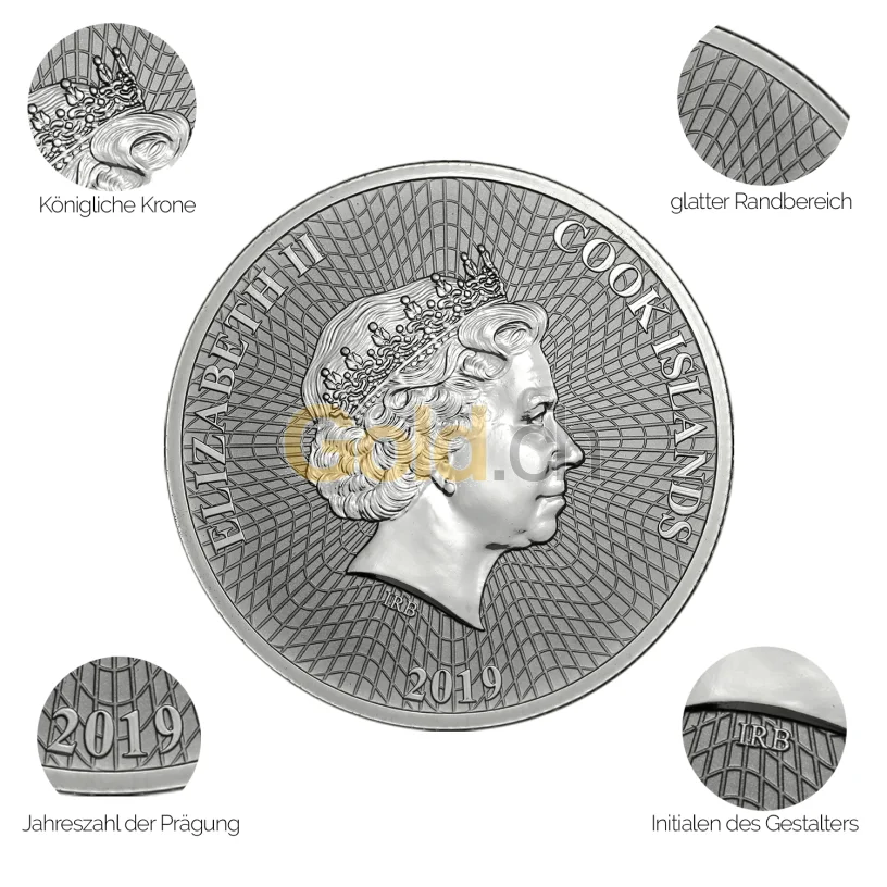 Die netzartige Struktur, welche zum maritimen Motiv der Cook Island Münzen passt, ist nicht nur ein Gestaltungselement, sondern schützt die Silbermünze vor illegalen Nachahmungen. Die komplexen Strukturen auf der Münze erschweren eine Fälschung der Münze.
